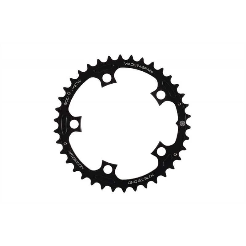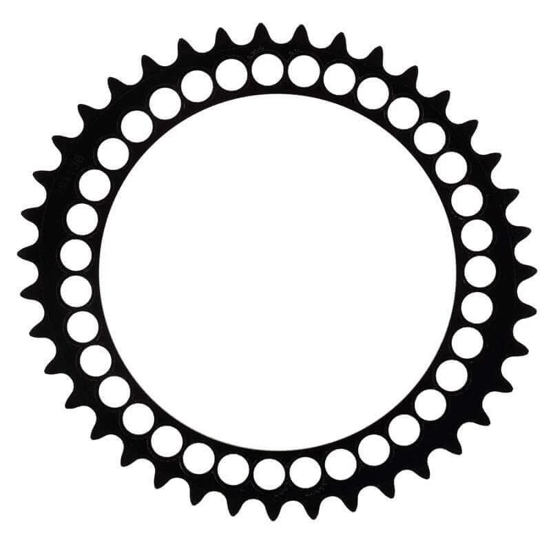 Plato Redondo Rotor NoQ Interior NegroPlato redondo fabricado en aluminio 7075 T6 mediante CNC y aligerado con numerosas ventanas.Pines de cambio en acero.Compatible con grupos de 9, 10 y 11v.Disponible en diferentes BCD y dentados.